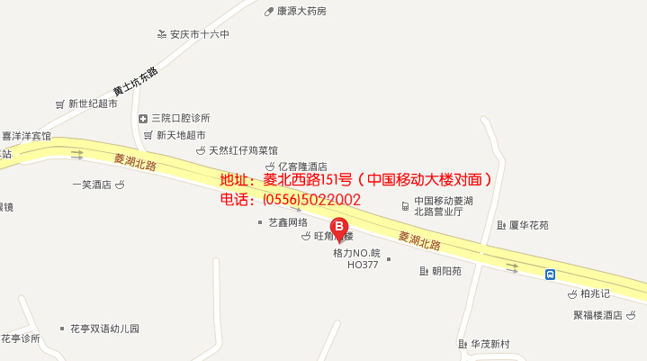 地址:安徽安慶宜秀區(qū)大龍山鎮(zhèn)206國道/菱北西路151號(hào)(中國移動(dòng)大樓對面)沿江東路80-90號(hào) 郵編:204655